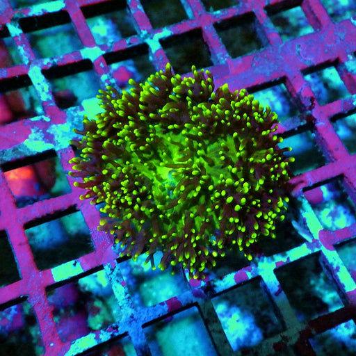 Rhodactis Mushrooms are found in a variety of Colors to include green, brown, tan, pink, and purple. The tentacles colorsusually contrast with the body.