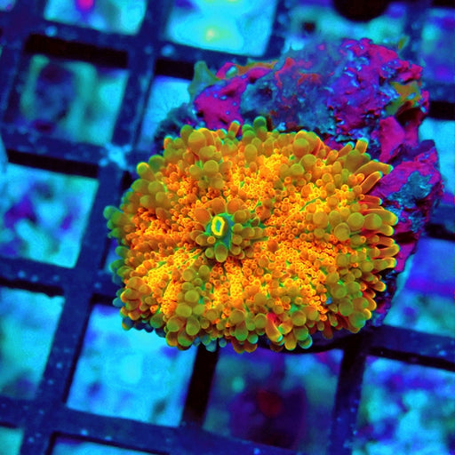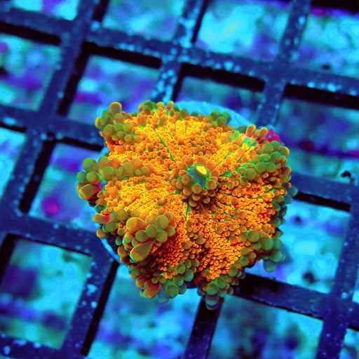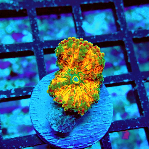 The Rhodactis genus of mushrooms corallimorphs are arguably the most diverse mushrooms in the reef aquarium hobby. They can range in size from the 1” Tonga bullseye varieties to gigantic 18” elephants ear mushrooms.