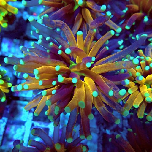 - Caulastrea Neon Green Colony: Brilliant fluorescent varieties