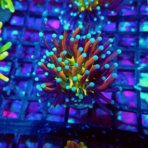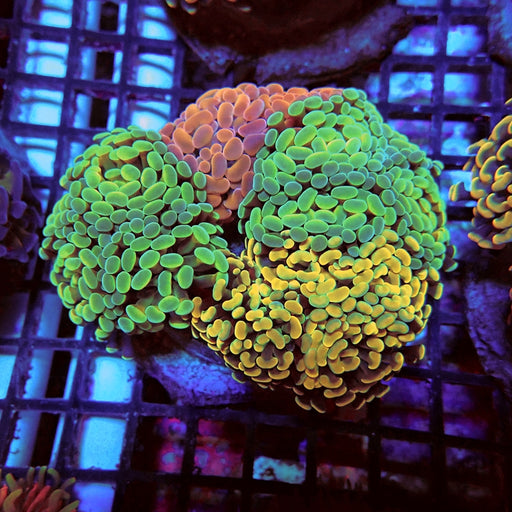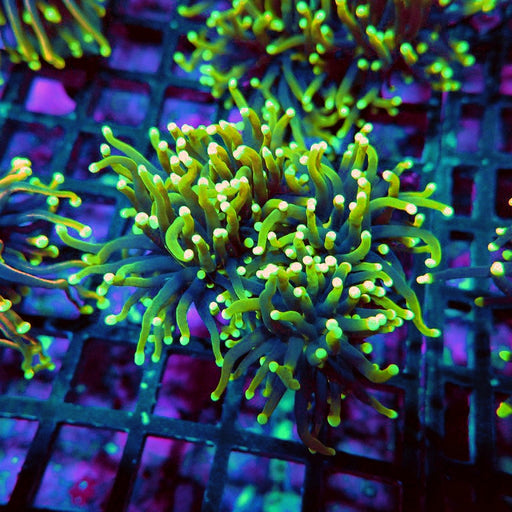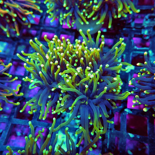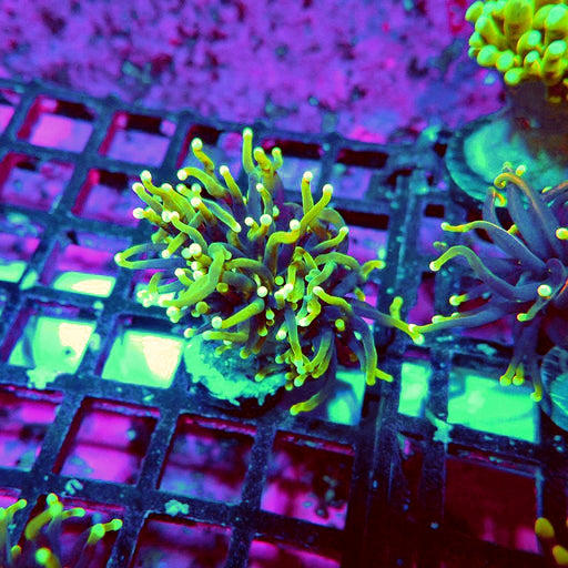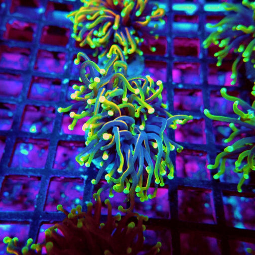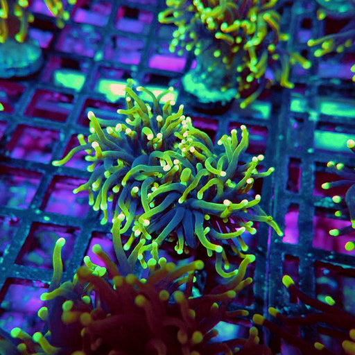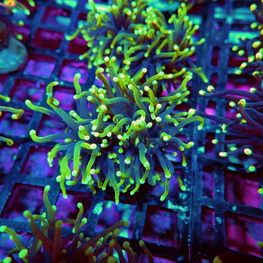 - Caulastrea Neon Green Colony: Brilliant fluorescent varieties