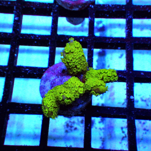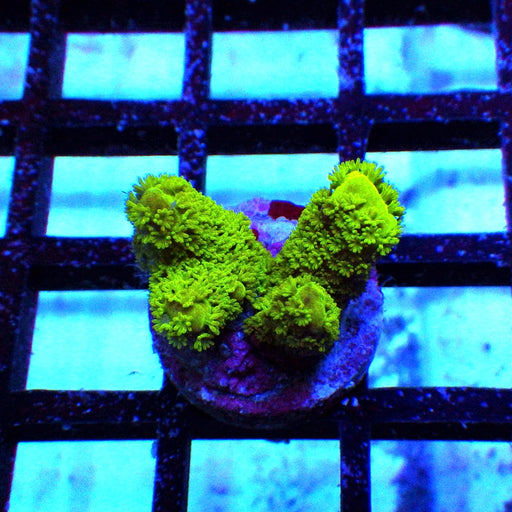 • REx Rainbow Goblin Faire: Exceptional yellow-green polyps with striking fluorescent patterns